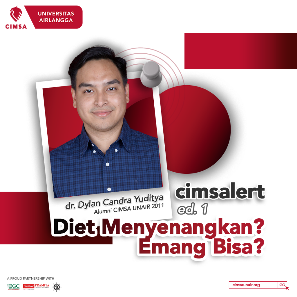Nah, apakah sudah terjawab teman-teman? Semoga terjawab ya! Jika ingin melakukan diet, lakukanlah dengan cara yang sehat, bukan merugikan tubuh dan akan lebih baik jika dikontrol oleh dokter dan ahli gizi yang sudah ahli di bidangnya. Terima kasih dr. Dylan sudah berbagi dan teman-teman yang sudah membaca. Tunggu CIMSAlert edisi selanjutnya, ya!